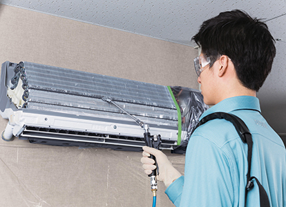 - エアコンからのイヤな臭いは内部のホコリや繁殖したカビなどが原因。通常では掃除できないエアコン内部のカビやホコリを専門の資器材で一掃。空気の衛生をキープします。