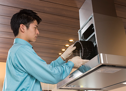- 分解して洗浄。油煙汚れもキレイに落とします