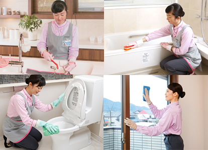 お掃除プランをトータルにご提案します。 - キッチン、浴室、トイレ、ガラス・サッシ・網戸など、家中のお掃除をプロの技術で引き受けるハウスワイドサービス。夏季、年末の大掃除、引っ越し、新築・改装時など、忙しいときにおすすめです。